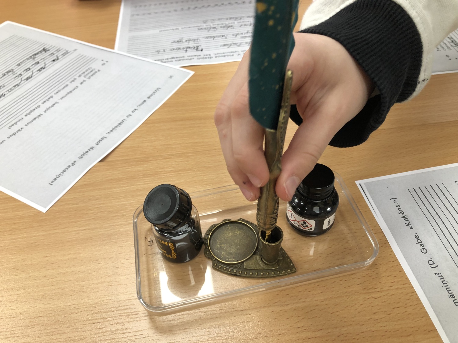 mēģināja rakstīt ar spalvaskātu un tinti kā senos laikos – tā bija iespēja novērtēt, kā laika gaitā mainījušies rakstīšanas rīki;