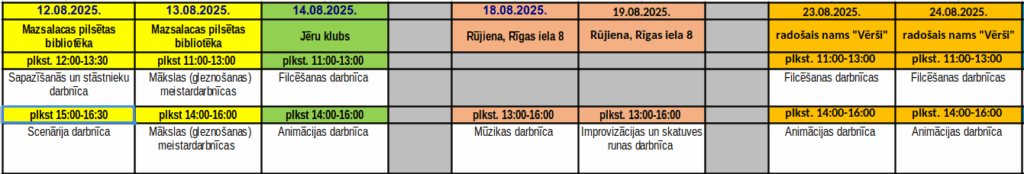 14.08.2025. plkst. 14:00-16:00 animācijas darbnīca Jēru klubā – Dace Liepa, Alma Emīlija Liepa, Reinis Jānis Lozda;